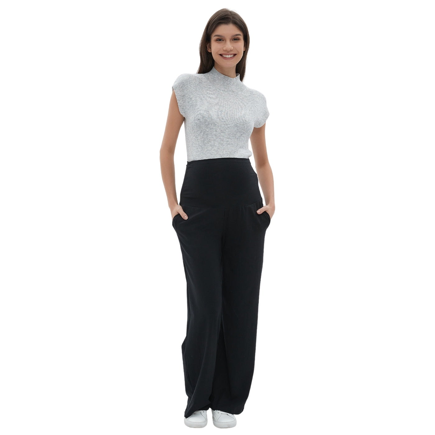 ✔️ Stretchy Support: Designed with a high-waisted, elastic-over-the-belly band, these pants offer gentle, flexible support that adapts to your growing belly without any restrictive elastic or adjustable straps.