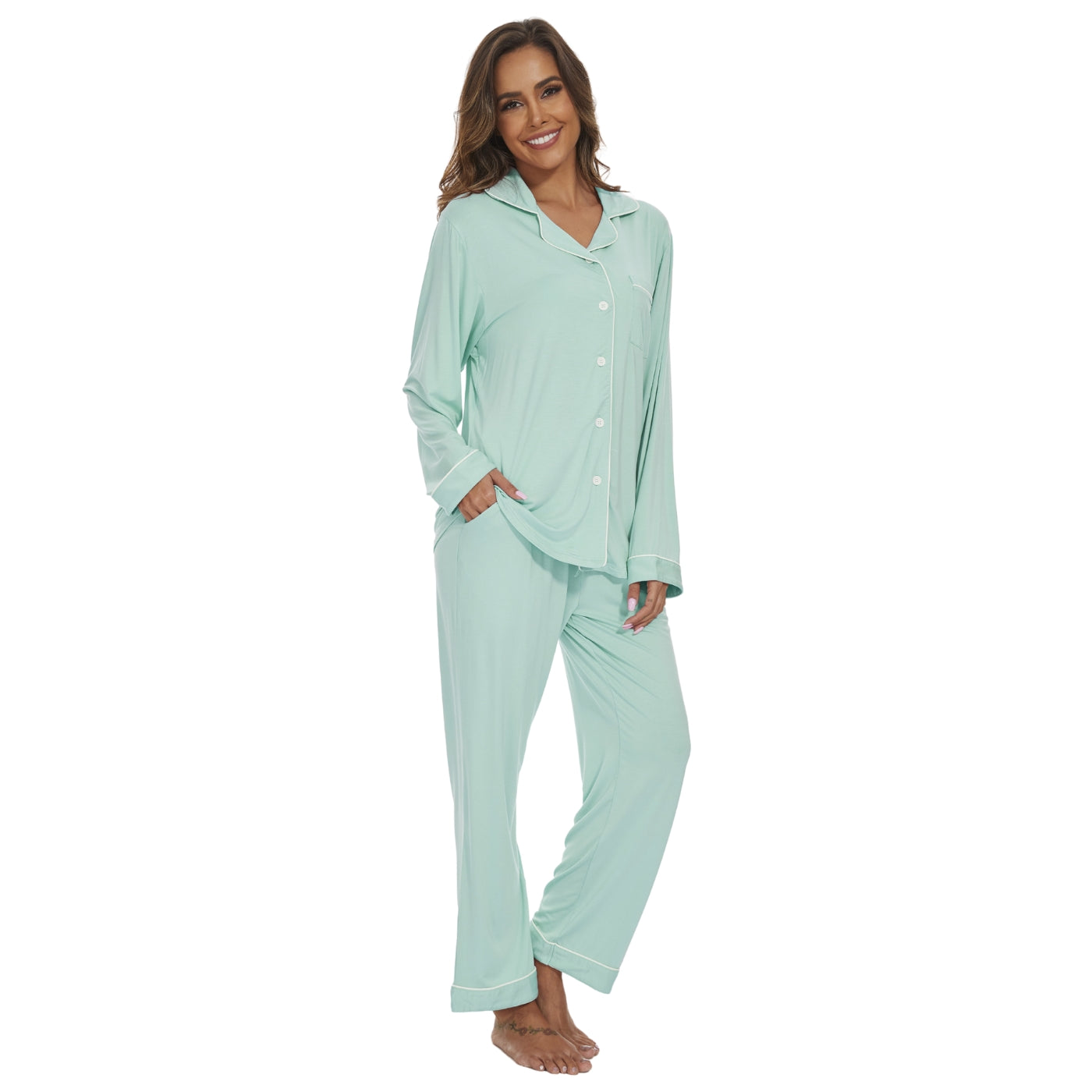 ✔️ Supreme Comfort: Best women's bamboo pajamas crafted from a bamboo viscose and spandex blend that feels incredibly soft and smooth on your skin.